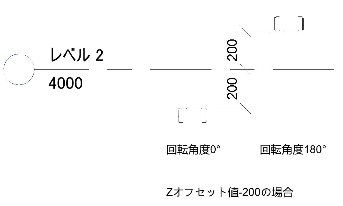 構造フレームファミリのプロパティから回転角度をつけたときは